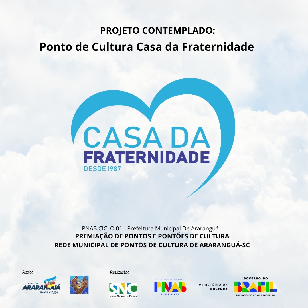 É com grande alegria que compartilhamos uma conquista muito especial: o Ponto de Cultura Casa da Fraternidade foi contemplado na Premiação de Pontos e Pontões de Cultura da Rede Municipal de Pontos de Cultura de Araranguá-SC, por meio do Edital PNAB Ciclo 01.