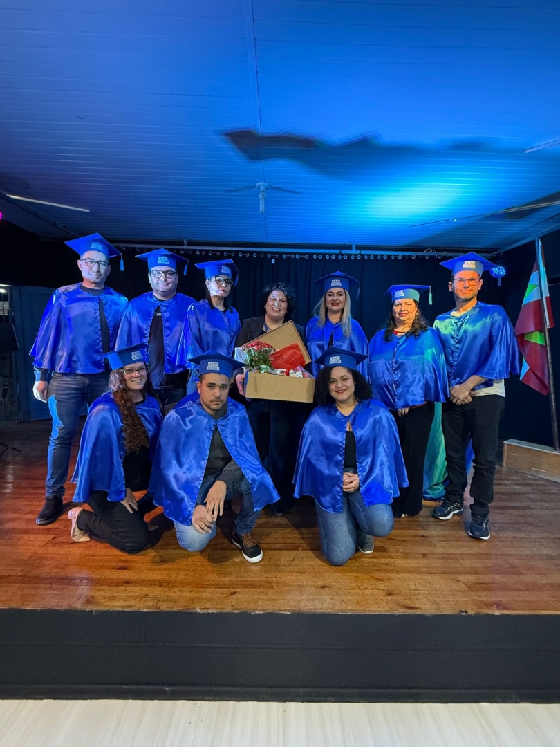 O SENAI, em parceria com a Casa da Fraternidade, realizou na noite de quarta-feira, 10 de setembro, a formatura de 38 alunos dos cursos de qualificação profissional de Modelista de Roupas, Assistente Administrativo e Panificação. O evento aconteceu na sede da instituição, em Araranguá, e reuniu estudantes, familiares, professores e gestores da Casa e do SENAI.