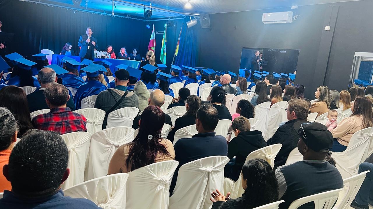 O SENAI, em parceria com a Casa da Fraternidade, realizou na noite de quarta-feira, 10 de setembro, a formatura de 38 alunos dos cursos de qualificação profissional de Modelista de Roupas, Assistente Administrativo e Panificação. O evento aconteceu na sede da instituição, em Araranguá, e reuniu estudantes, familiares, professores e gestores da Casa e do SENAI.
